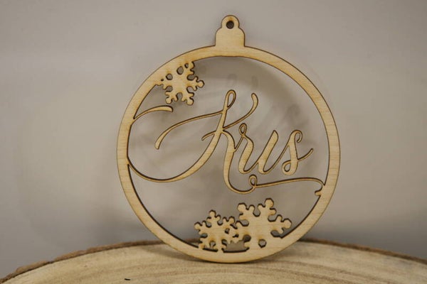 Houten kerstbal met naam