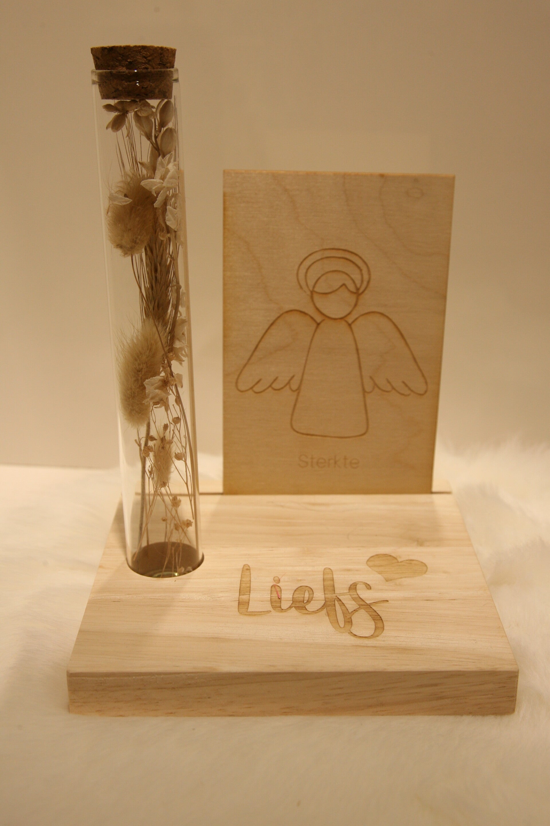 Dit fotoblokje is gemaakt in rubberwood en kan gegraveerd worden met een tekst naar keuze.